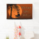 Diversión por una ducha de bebé de Halloween o la futura madre del gótico. Presenta un carro de bebés con un cuervo mirando hacia dentro con un sol y un árbol naranjas en el fondo.