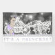 Pancarta de la princesa púrpura de la ducha de bebé con la adorable princesa usando pantalones de espliego de lavanda y corona en un hermoso y brillante fondo de carruaje de princesa. Puedes personalizar con el texto de nuestra elección.