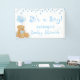 Pequeño cartel personalizado de bienvenida con ducha de bebé, con el título IT'S A BOY y un oso de peluche color marrón con una proa azul y un globo de corazón azul con un borde de garland con estrellas azules. AYUDA: Para obtener ayuda con la modificación/personalización del diseño, la transferencia del diseño a otro producto o para coordinar elementos para su experiencia de ducha de bebé, contacte con el diseñador ANTES DE PEDIRLE vía Zazzle Chat o makeitaboutyoustore@gmail.com.