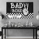 Celebrate your little one's second trip around the sun with this Bad 2 the Bone 2nd birthday party banner. Designed in classic black and white checkerboard with skeleton hand making a peace sign, this decor is perfect for highlighting your wild ride through the terrible twos. Personalize it with your event details for a party that will be two good to be true!