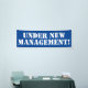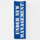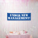 Este cartel de "Bajo nueva gestión" es lo suficientemente audaz como para anunciar su cambio de titularidad de negocios. Banner de adquisición de empresas o nuevos propietarios. Blanco sobre azul.