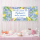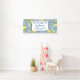Baldosas modernas, elegantes, portuguesas, limones azules y blancos, españolas, italianas, mediterráneas, verano ducha de novia Banner de bienvenida. Perfecto para recién casados. Puedes personalizarlo con los nombres y fechas de la novia y el novio.
