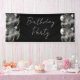 Pancarta de Fiesta de los Purpurinas de la Plata Negra de cumpleaños. Decorada con purpurinas de plata falsa y globos. Celebra tu día especial con esta elegante fiesta de cumpleaños Modern Black and Silver tus detalles fiestas con el tipo de letra clásico sobre el color de fondo negro, simple y elegante, gran sorpresa para adultos invitación de cumpleaños para hombres y mujeres. Hay más diseños y suministros de fiesta disponibles en mi tienda NiceStudioCreative.