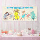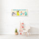 Este cartel para el cumpleaños de un niño es divertido y colorido. Una hiena está tocando tambores, un chita está tocando bajo, un zorro está tocando guitarra eléctrica, y un lobo está tocando el teclado. Agregue el nombre de su hijo.