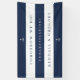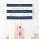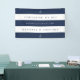 Bienvenidos a su cena con temática náutica, verano o costera, con esta llamativa bandera azul marino y rayas blancas. Personalice con tres líneas de texto personalizado acentuadas con dos ilustraciones de anclaje blancos. Mostrado con "mañana lo hacemos! Felicitaciones [nombre] y [nombre]."