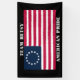 "Texto blanco del orgullo americano de Betsy del equipo" y un gráfico estilizado rojo, blanco, y azul de la bandera de Betsy Ross que representa a las primeras 13 colonias de los E.E.U.U.