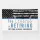 Este diseño presenta una bandera de la fuerza policial con franjas negras y blancas, y también una franja de línea azul delgada. El texto "La leyenda se retira" se sitúa encima del nombre personalizable del oficial de la ley, sheriff, capitán o jefe que se jubila. ¡Celebre este hito con estilo!