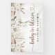 Crea un hermoso punto focal con esta bandera de baby shower boho que presenta hierba de pampas de acuarela, flores blancas y un caprichoso texto en forma de corazón de bebé en flor. Ideal para temas de niña, niño o neutrales. Perfecta como letrero de bienvenida, fondo para fotos o detrás de la mesa de postres. Totalmente personalizable con tu nombre y detalles del shower.