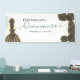 Bienvenidos a sus invitados con elegancia real utilizando este impresionante banner de bienvenida personalizado, perfectamente adaptado para una sofisticada Quinceañera o Sweet 16. El diseño presenta a una hermosa niña en un majestuoso vestido negro combinado con rosas de bronce oscuro y confeti dorado brillante, todo resaltado por una lujosa escritura en verde esmeralda.