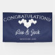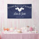 Lona Bandera de Boda Azul Marino Corazones Blancos Eleg