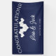Bandera de Boda Azul Marino con Corazones Blancos Elegantes. Esta Bandera colgante de Recepción de Boda está diseñada con corazones blancos suaves sobre un fondo de color azul marino. El texto incluye: ¡Felicidades!, Los primeros nombres de la Novia y el Novio y Fecha de Boda. Para personalizar, simplemente inserte sus datos en nuestra plantilla fácil, reemplazando el texto de muestra.