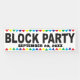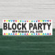 Bloquear banner de calle fiesta con línea de texto personalizado: edite para agregar fecha u otra información para su fiesta. Borde colorido de inclinación en la parte superior e inferior. No olvides pedir el Banner al aire libre si estás fuera.