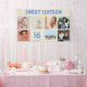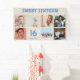 Crea tu propia bandera de collage de fotos personalizadas para una fiesta de cumpleaños número 16. La plantilla está configurada para que agregues tu nombre personalizado, edad y tus fotos favoritas. Tus fotos aparecerán automáticamente como un collage de fotos. La bandera tiene un estilo boho y un tablero de ajedrez retro moderno en azul y crema. La bandera de cumpleaños está completa con "Dulces Dieciséis" y la edad 16 escrita en tipografía de burbujas retro linda.