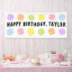Feliz cumpleaños bandera de tenis para fiesta de cumpleaños con tema de tenis, evento de club de campo o torneo de tenis. Para personalizar, edite el texto para agregar su nombre o personalizar de otra manera.