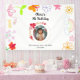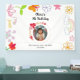 Agrega un toque de color a la celebración de tu hijo con esta bandera de fiesta infantil amarilla y morada. Perfecta para cumpleaños, hace una decoración vibrante y un fondo para fotos. Personaliza con el nombre o edad de tu hijo para un toque único que los invitados amarán. ¡Divertida, festiva y fácil de personalizar!