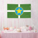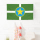 Este diseño presenta la bandera de la ciudad de Jackson, que es la capital y la ciudad más poblada del estado de Misisipi en Estados Unidos. Jackson es uno de los dos escaños del condado de Hinds, junto con Raymond, Mississippi. La ciudad se encuentra en el río de las Perlas y está situada en la región de Mississippi, en la región de Jackson Prairie. A Jackson, Mississippi, se le conoce a veces como la encrucijada del sur. Un habitante de Jackson es conocido como un Jacksonian.