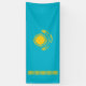 Este diseño presenta la bandera nacional de Kazajistán (oficialmente conocida como República de Kazajistán), que es un país transcontinental principalmente ubicado en Asia Central con una porción menor al oeste del Ural en Europa del Este. Kazajistán comparte fronteras con Rusia en el norte, China en el este, y Kirguistán, Uzbekistán y Turkmenistán en el sur; también linda con una gran parte del Mar Caspio en el suroeste. Kazajstán también está muy cerca de Mongolia, aunque los dos países no comparten frontera. Es el país sin litoral más grande del mundo. La capital de Kazajistán es Nur-Sultan, antes conocida como Astaná. La ciudad más grande de Kazajistán es Almaty. Otras ciudades importantes de Kazajstán son Shymkent, Karaganda, Aktobe, Taraz, Pavlodar, Oskemen, Semey y Atyrau.