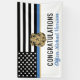 Este diseño presenta una bandera de la fuerza policial con franjas negras y blancas, y una franja de línea azul delgada también. Una excelente manera de felicitar al nuevo graduado de la academia de policía. Personalice con el nombre del oficial de cumplimiento de la ley que se gradúa en azul. ¡Celebre este hito con estilo!