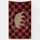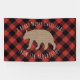Una bandera que ofrece un ilustracion de una silueta del oso de la arpillera sobre un fondo rojo y negro del control de la tela escocesa del búfalo del leñador. El texto dice, "las FELICES NAVIDAD DE UN BEARY" personalizan con su nombre.
