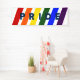 Celebrar el Orgullo LGBTQ+ con rayas diagonales de arcoiris con la palabra ORGULLO en negrita tipografía azul oscuro entre y parcialmente superponiéndose las franjas de colores en un fondo blanco. Los bloques de color rojo, naranja, amarillo, verde, azul y violeta van de izquierda a derecha. Para ver el colorido diseño del orgullo gay en otros ítems, haga clic en la colección "Artes Rocklawn". Copyright ©Claire E. Skinner, todos los derechos reservados.