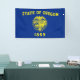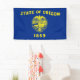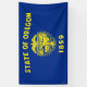 Este diseño presenta la bandera del estado de Oregón, que se encuentra en la región noroeste del Pacífico, en la costa oeste de los Estados Unidos. El estado está rodeado por Idaho, Washington, California y Nevada. La bandera de Oregón tiene un fondo azul marino con un sello de oro y texto; fue usada oficialmente por primera vez en febrero de 1925. La bandera contiene las palabras "Estado de Oregón" y el año 1859, que es cuando Oregón se convirtió en estado.