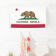 Este diseño presenta la bandera del estado de California en Estados Unidos, uno de los estados más poblados y ricos del país. A menudo se le conoce como la Bandera del Oso, y se basa en una bandera que fue ondeada por primera vez durante la Revuelta de la Bandera del Oso de 1846. Contiene una sola estrella roja, una franja roja en la parte inferior y un oso pardo de California; también lleva el texto "California Republic". La capital de California es Sacramento, mientras que la ciudad más grande del estado es Los Ángeles. Otras ciudades importantes de California son San Diego, San José, San Francisco, Fresno, Long Beach, Oakland, Bakersfield y Anaheim. Un habitante de California es conocido como californiano.