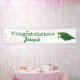 Bandera de la enhorabuena de la graduación hecha en verde, blanco, y oro. Los gráficos de estrellas de oro y un mortarboard verde capsulan, adornan la bandera interior blanca. Personalice el texto verde de encargo para adaptarse a sus necesidades de la fiesta de graduación.