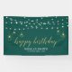 Este diseño de pancarta para eventos presenta luces de cuerda geométricas doradas con estilo y tipografía de "Feliz Cumpleaños" sobre un fondo verde esmeralda. Esta pancarta de felicitaciones es la decoración perfecta para eventos modernos. Puedes personalizar el nombre y el texto en la parte inferior de la pancarta para tus eventos.
