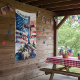 Lona Bandera y cruza "Dios bendiga a Estados Unidos"
