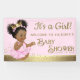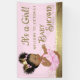 Bandera de baby shower de princesa afroamericana rosa y dorada con adorable princesa étnica que lleva un tutú rosa, perlas y una hermosa corona dorada sobre un hermoso fondo rosa y dorado. Esta bandera de baby shower rosa y dorada se personaliza fácilmente con tu texto en el estilo de fuente y color y redacción de tu elección. También puedes cambiar el color de fondo.