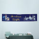 Estandarte de las noches árabes con hermosas ilustraciones azules y doradas sobre un fondo azul real y dorado. Este elegante estandarte de fiesta y evento de las noches árabes se personaliza fácilmente para su evento simplemente agregando su texto en el estilo de fuente que prefiera. También puede cambiar el color de fondo en este elegante estandarte de fiesta de las noches árabes. Este es un diseño impreso sin purpurina real, lámina, etc.