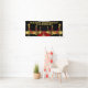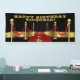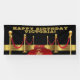 Banderín de fiesta de cumpleaños de Hollywood con alfombra roja llena de estrellas y escaleras doradas sobre fondo negro. Este banner de cumpleaños de alfombra roja de Hollywood se personaliza fácilmente para su evento simplemente agregando el texto de su elección en el estilo de fuente y color que prefiera.