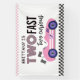 Este diseño presenta un tema de coche de carreras rosa "Two Fast Two Curious" para la fiesta de cumpleaños de una niña con una tarjeta de carreras linda y un patrón de cuadros rosas. Este producto se puede personalizar fácilmente. Si necesita ayuda con la personalización del producto o necesita productos coincidentes, por favor contácteme a través de Zazzle.