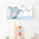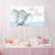 Banderín de baby shower de elefante niño con un adorable elefante bebé con corbata negra en un fondo de lunares azules. Este banderín de baby shower de elefante se personaliza fácilmente con el texto que elijas.