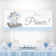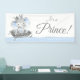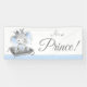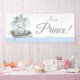 Bandera de baby shower del príncipe elefante con un adorable príncipe elefante en un fondo de lunares azules. Esta bandera de baby shower de elefante niño se personaliza fácilmente con el texto de su elección en el estilo de fuente que prefiera.