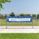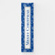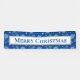 Esta pancarta del Navidad Holiday se muestra al aire libre con una estampada de copos de nieve en invierno. Mostrado en azul con el texto "Feliz Navidad". Personalizar o compra según el diseño.