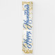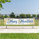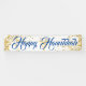 Este cartel de vacaciones se muestra en el estilo exterior. Seleccione entre interior o exterior, con o sin mangas. Mostrado en blanco con el texto azul "Happy Hanukkah" en un guión elegante con dos estrellas de aspecto dorado en cada extremo. Personalizar o compra según el diseño.