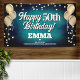 Cartel divertido para interiores o exteriores, con globos metálicos de oro festivo a ambos lados del diseño con confeti metálico de oro brillante en un fondo azul acuático rico en textura para tu banner de cumpleaños personalizado. Este producto se duplica como un maravilloso recuerdo de cumpleaños.