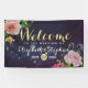 Plantillas de banner boda - Guión elegante, Roses color de agua rosado floral y luces de cadena en color morado Sparkle Bokeh iluminan fondo. ¡Un Diseño Perfecto Para Tu Gran Día! Todos Los Estilo De Texto, Los Colores Y Los Tamaños Se Pueden Modificar Para Ajustarse A Sus Necesidades.
