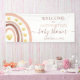 Decoren su Baby Shower con una magnífica pancarta de arcoiris bohemio de color rosa. Edite fácilmente la plantilla para leer el nombre y la fecha de evento de Mamá para ser. Este cartel es un elemento coordinado para nuestro diseño del arco iris de Boho. Un bello arco iris de color neutro con corazones de Relieve metalizado dorado. Pancarta de Baby Shower del arcoiris rosado.