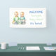 Banner de ducha de bebé personalizado con temática gemela azul y verde.
