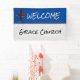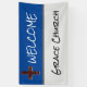 Haga que todos se sientan bienvenidos cuando entren a sus puertas de la iglesia con el Banner de bienvenida Blue and Silver With Cross Church. Banner vinílico de 3' x 5'. Se puede personalizar y personalizar.