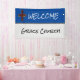 Lona Banner de bienvenida azul y plateado con iglesia c