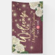 Plantillas de banner de bienvenida boda - Elegante color de agua blanco adorable hidrangea Flores y cadenas de luz sobre fondo rojo Borgoña. ¡Un Diseño Perfecto Para Tu Gran Día! Todos Los Estilo De Texto, Los Colores Y Los Tamaños Se Pueden Modificar Para Ajustarse A Sus Necesidades.