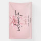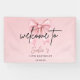 Elegante banner de bienvenida para fiesta de cumpleaños rosa con fondo pastel suave, texto con letra cursiva elegante y diseño de lazo de cinta con estilo. Perfecto para decoración de cumpleaños importante, temas de fiesta estética para niñas, fondos para fotos, banners de celebración y decoraciones modernas para fiesta de cumpleaños. Agrega un toque moderno e invitante a cualquier configuración de evento de cumpleaños.