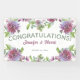 Un banner suave Boda morado colgante floral para sus accesorios de recepción. El texto incluye: Felicitaciones, Los primeros nombres de la novia y de Groom, y Fecha de Boda. Para personalizar, simplemente inserte su texto en nuestra plantilla sencilla, reemplazando el ejemplo. Asegúrese de ver la colección completa de Bodas florales suaves para tarjetas y accesorios a juego.