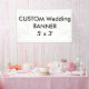 Banner personalizado de 5' x 3', impresión de color vibrante de borde a borde, los bordes se someten a soldadura térmica para un acabado limpio y limpio. Disponible en interiores, exteriores y exteriores con mangueras metalizado. 4 opciones de tamaño. Central de BODA personalizada - CREE, REALICE, DISEÑE SUS PROPIAS BANDERAS DE RECEPCIÓN DE BODA PERSONALIZADAS A partir de una PLANTILLA DE diseño PERSONALIZADA y totalmente PERSONALIZABLE.