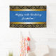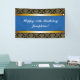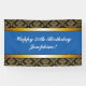 Lona Banner de cumpleaños Blue Any Age Gold Damask