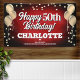 Cartel de pancartas divertidas en interiores o exteriores, con globos metálicos plateados festivos a ambos lados del diseño con confeti metálico brillante y dorado en un rico fondo rojo texturado para tu pancarta de cumpleaños personalizada. Este producto se duplica como un maravilloso recuerdo de cumpleaños.