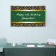 Lona Banner de cumpleaños Green Any Age Gold Damask